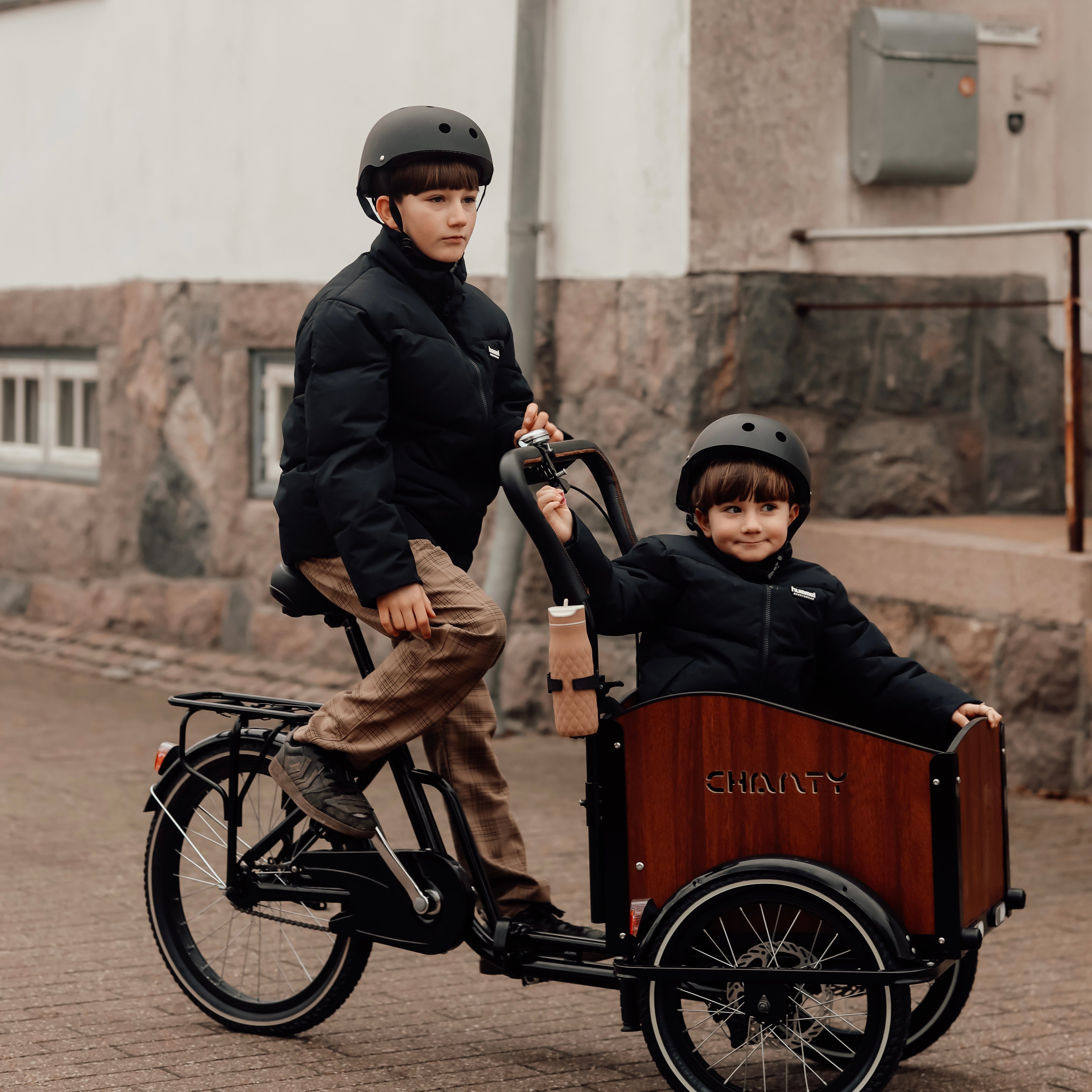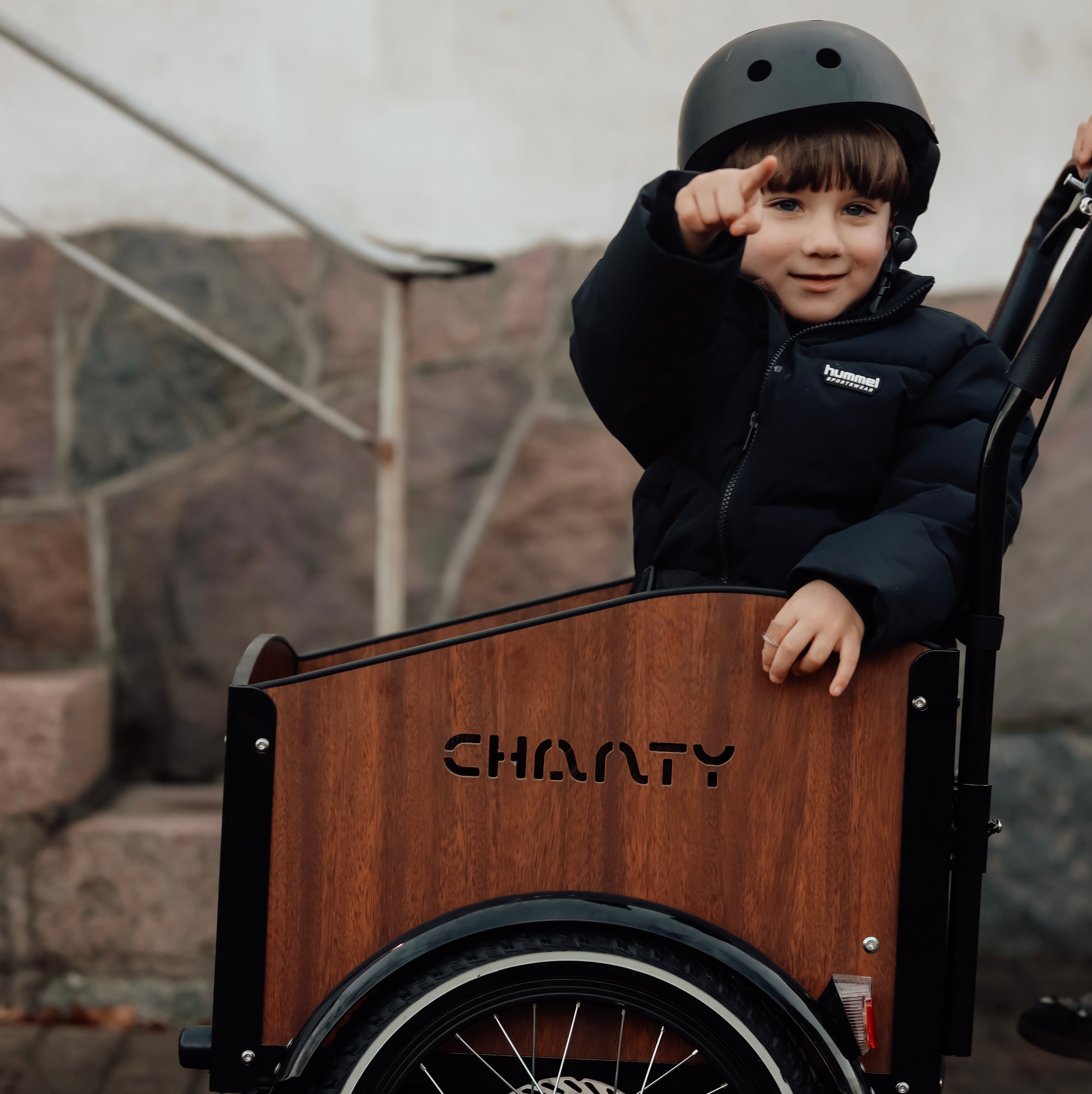 Stor Chanty Cargo Kid er en rummelig og stabil børneladcykel udviklet til ældre børn og unge, der ønsker frihed, bevægelse og tryg transport. Den kombinerer dansk design med høj kvalitet, 7 Shimano-gear og skivebremser for og bag for maksimal kontrol. Den robuste ladkasse kan bære op til 40 kg, mens hele cyklen kan klare 150 kg + fører. Perfekt til skole, sport, fritid og transport af udstyr – bygget til hverdagens eventyr