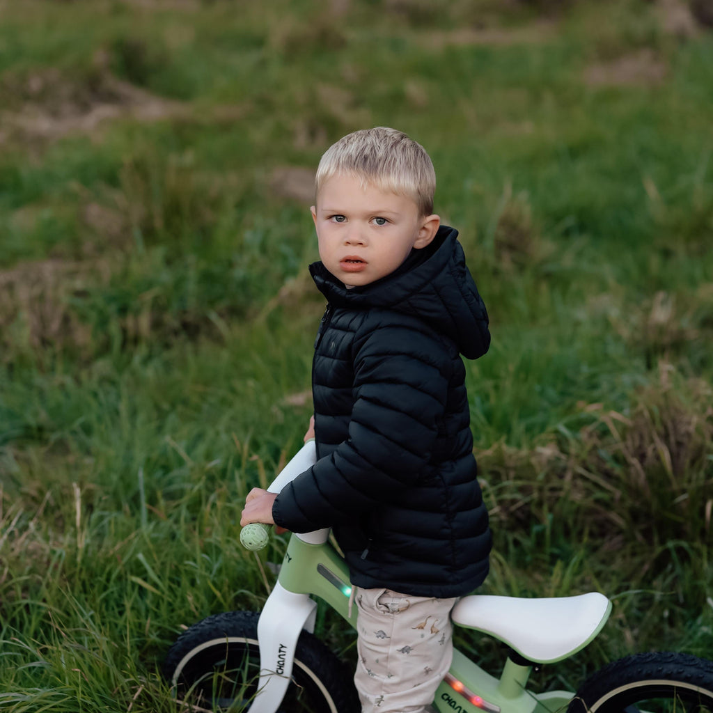 • Produktnavn Chanty Go Grøn Løbecykel med lys – Tryg start på cykling for de mindste